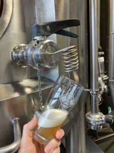 Am Ende der Hauptgärung erfolgt dann die Kalthopfung, um noch intensivere Fruchtaromen zu entfalten. Danach noch wenige Wochen Reifung im Lagertank, gefolgt von Abfüllung in Flaschen und Fässer.