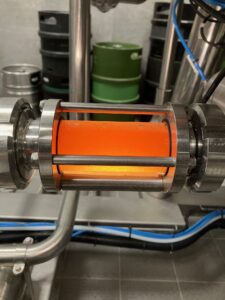 Nach dem Kochen mit restlichen Hopfengaben wurde die Würze beim Transfer in den Gärtank über einen Rohrwärmetauscher heruntergekühlt. Die letzten Grad für die kalte Anstelltemperatur von 8,5°C mussten allerdings im Gärtank herausgeholt werden. Nach der Reinigung des Sudhauses durfte als letztes Puzzlestück die W34/70 ihre Arbeit aufnehmen.