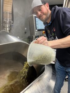 Am 24.2.26 haben wir uns morgens bei Felwila eingefunden – Braumeister Christian, Sieger Ivo und Zweitplatzierter Heiko. Dominik (Drittplatzierter) wollte eigentlich auch dazu kommen, musste aber leider kurzfristig absagen. Das Schroten konnte bereits am Vortag vorbereitet werden und das weiter Fördern vom Malz in den Maischekessel erfolgt über eine Schneckenspirale ganz ohne Mühe. Einmal eingemaischt sind auch kaum manuelle Schritte notwendig, da das Programm von der Steuerung abgefahren wird.