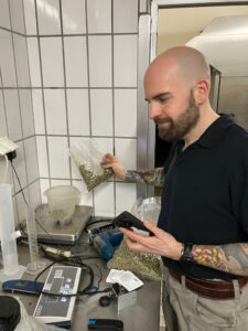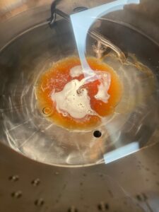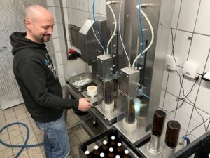 Das war der Zeitpunkt für etwas mehr Körpereinsatz. Ivo musste Austrebern und den Läuterbottich reinigen, während Heiko das Abfüllen einer Charge „Helle Freude“ in Flaschen übernommen hat. Christian konnte parallel unseren Gärtank „Gärda“ reinigen und vorbereiten.